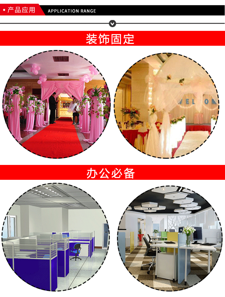其次,我们可以从他们的主要用途方面来了解。布基胶带的主要作用是用在于展会连接地毯方面的作用,以及室外管道,一些包装等方面起这作用。而普通胶带的胶带主要是封箱打包作用的。